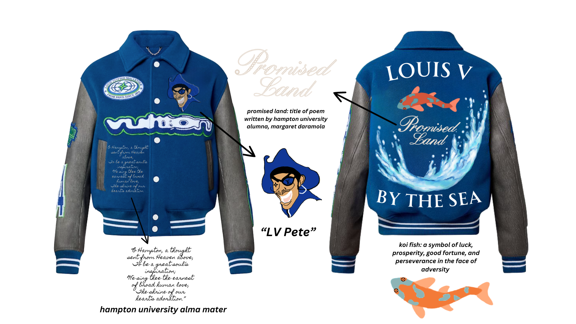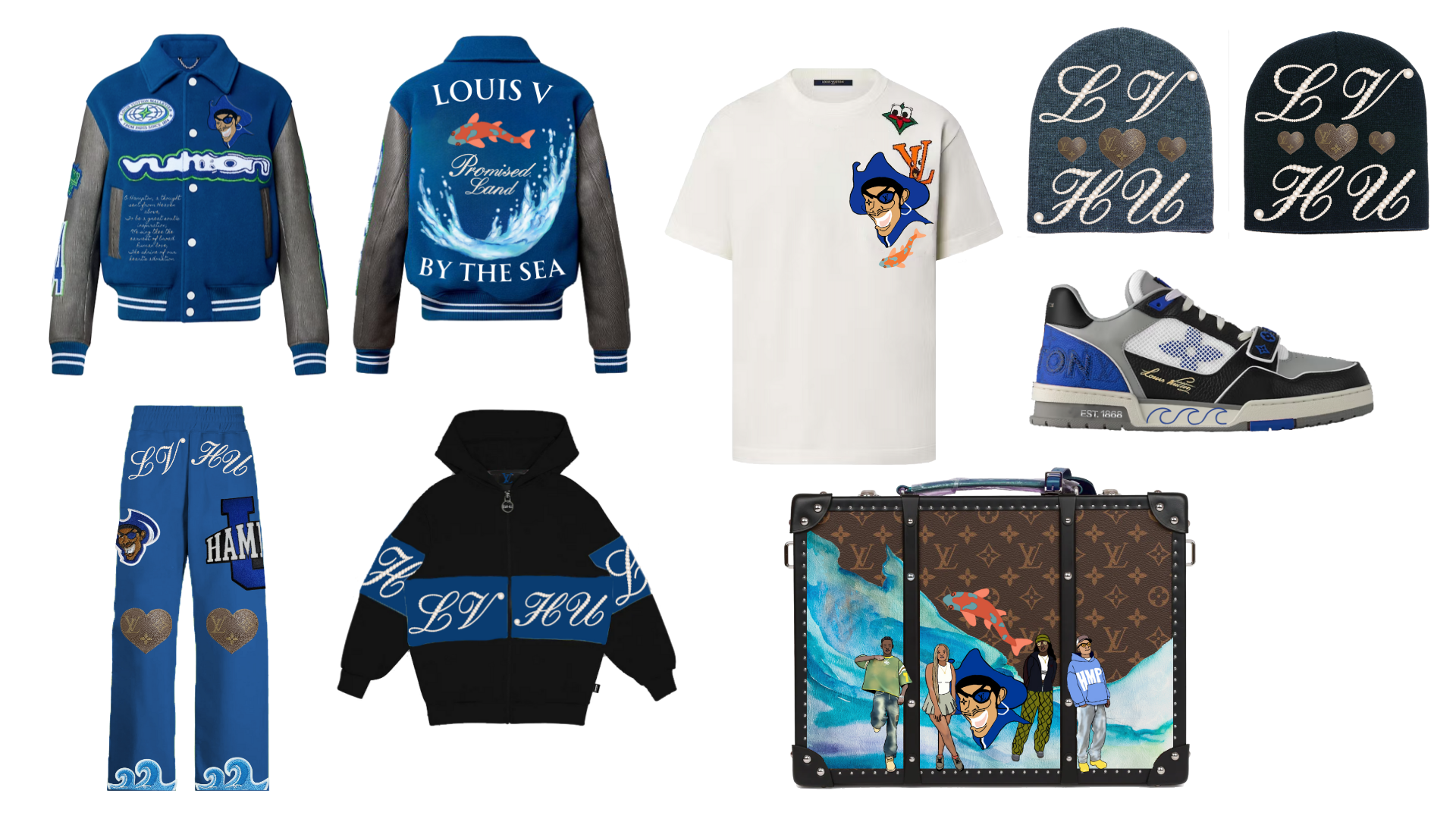 Louis V By The Sea takes inspiration from Pharrell Williams, the Black community’s proximity to attaining luxury (i.e. the Dapper Dan era, etc), HBCU streetwear culture, and luxury collaborations at other HBCUS (Ralph Lauren x Spelman & Morehouse).