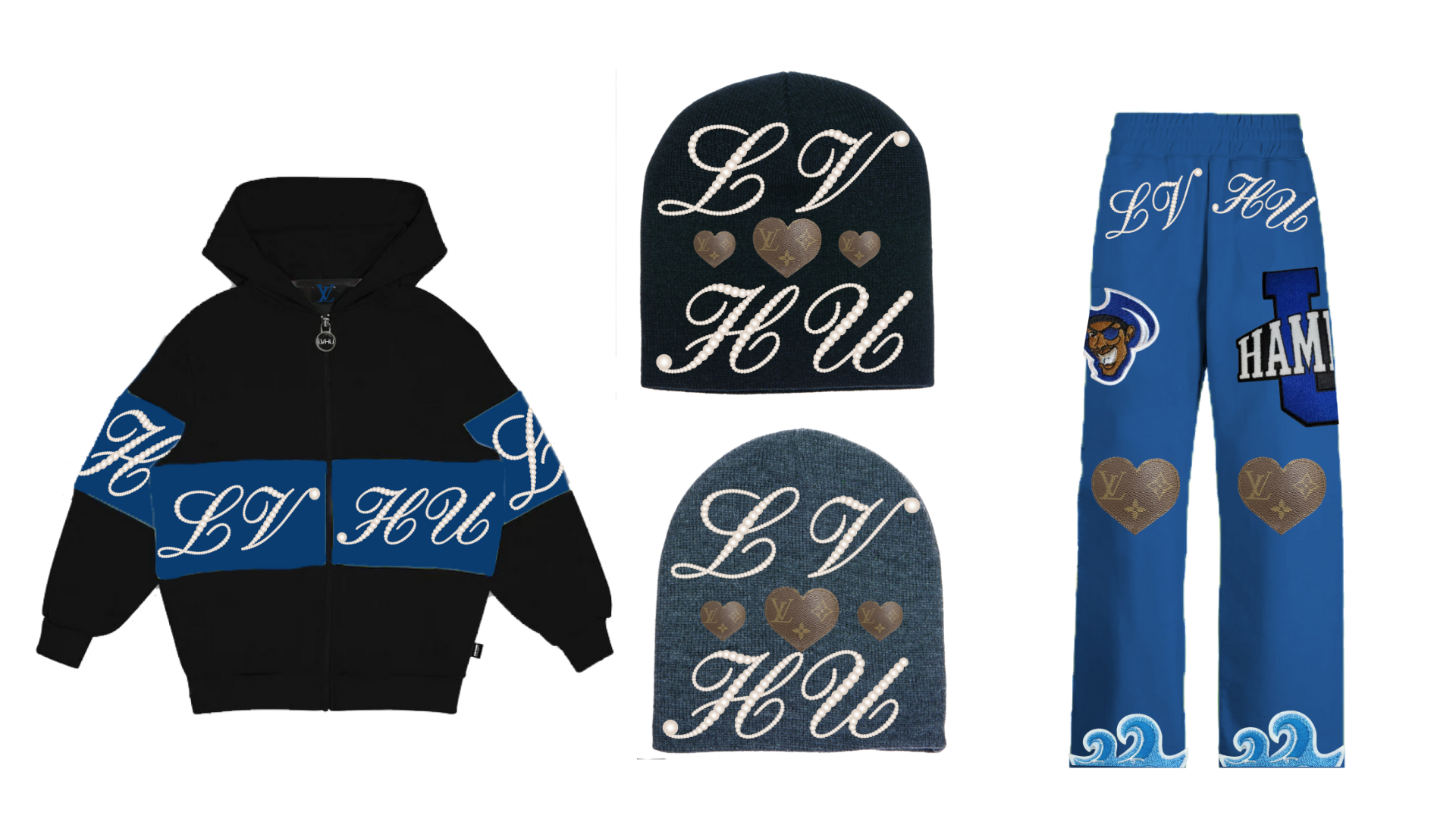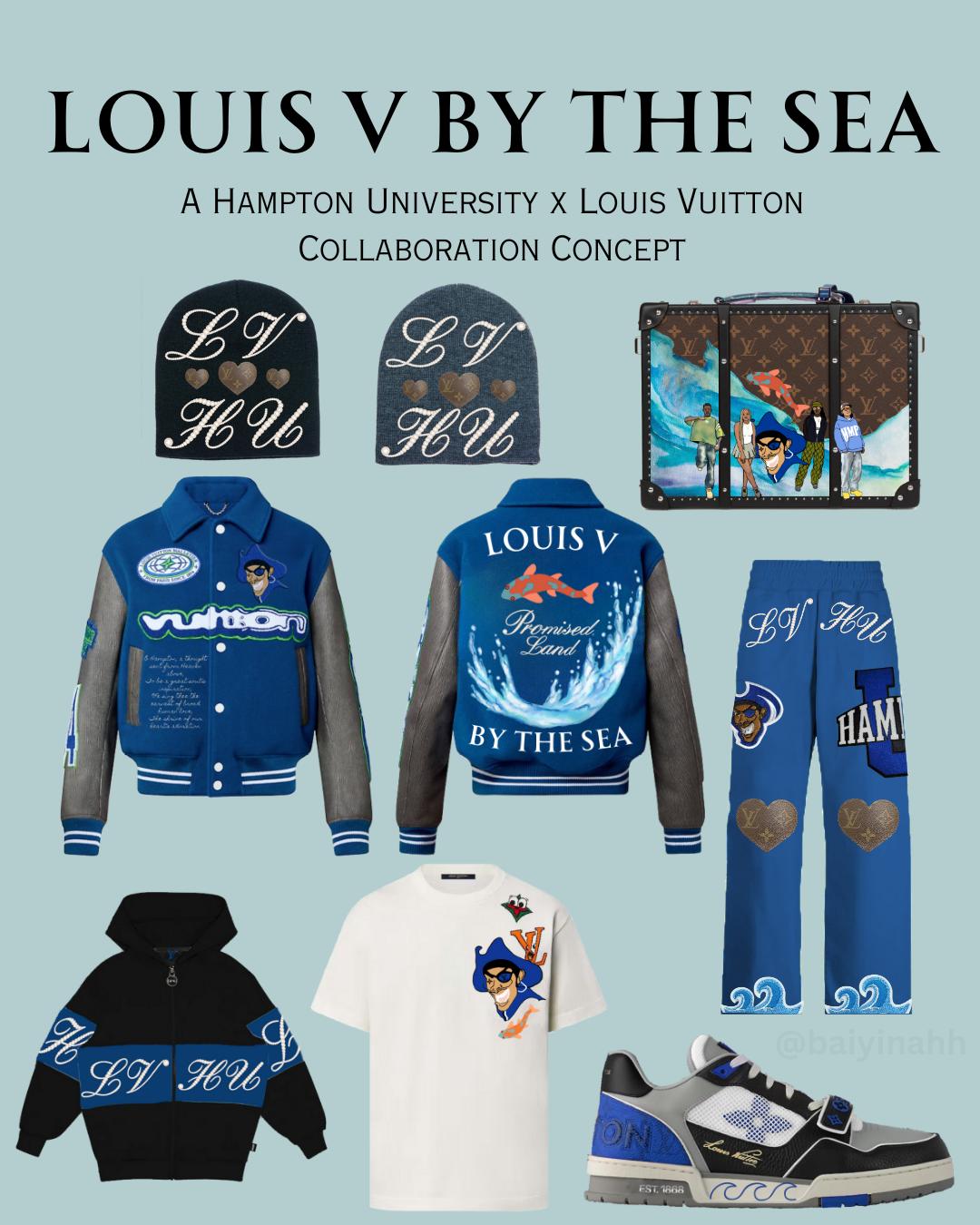 Throughout my journey as a designer, I have fallen in love with collaborations – especially between entities that one may not suspect. This capsule collaboration collection concept, Louis V By The Sea, takes inspiration from Pharrell Williams, the Black community’s proximity to attaining luxury (i.e. the Dapper Dan era, etc), HBCU streetwear culture, and luxury collaborations at other HBCUS (Ralph Lauren x Spelman & Morehouse).