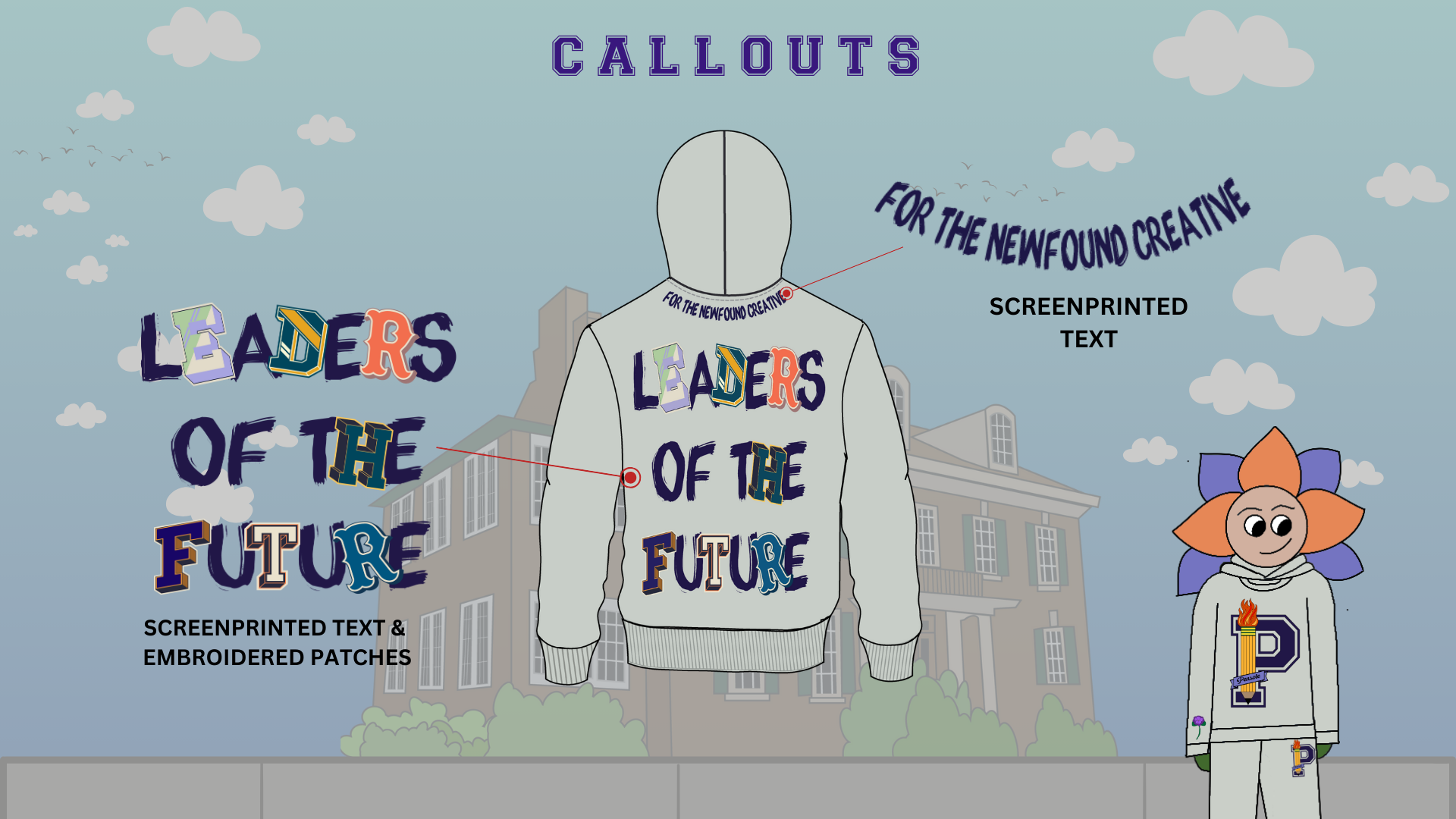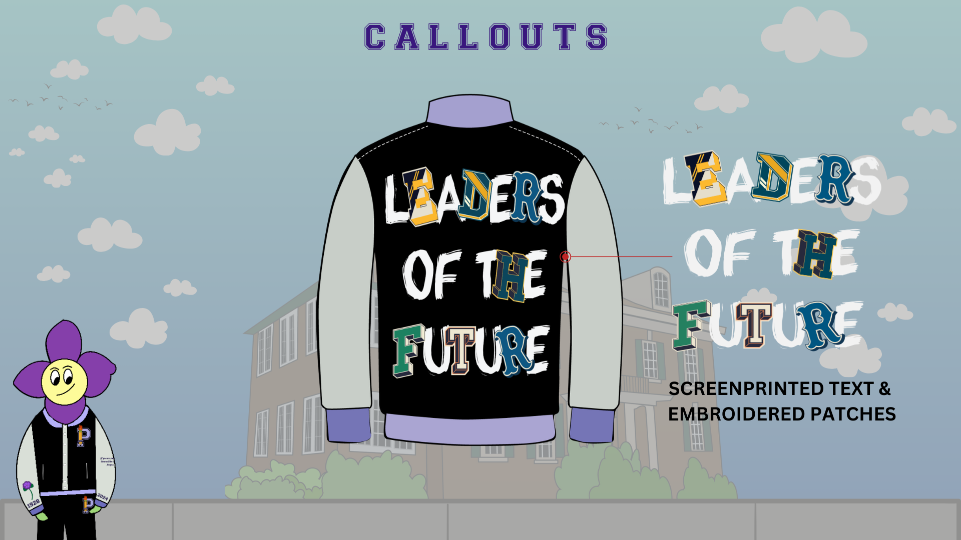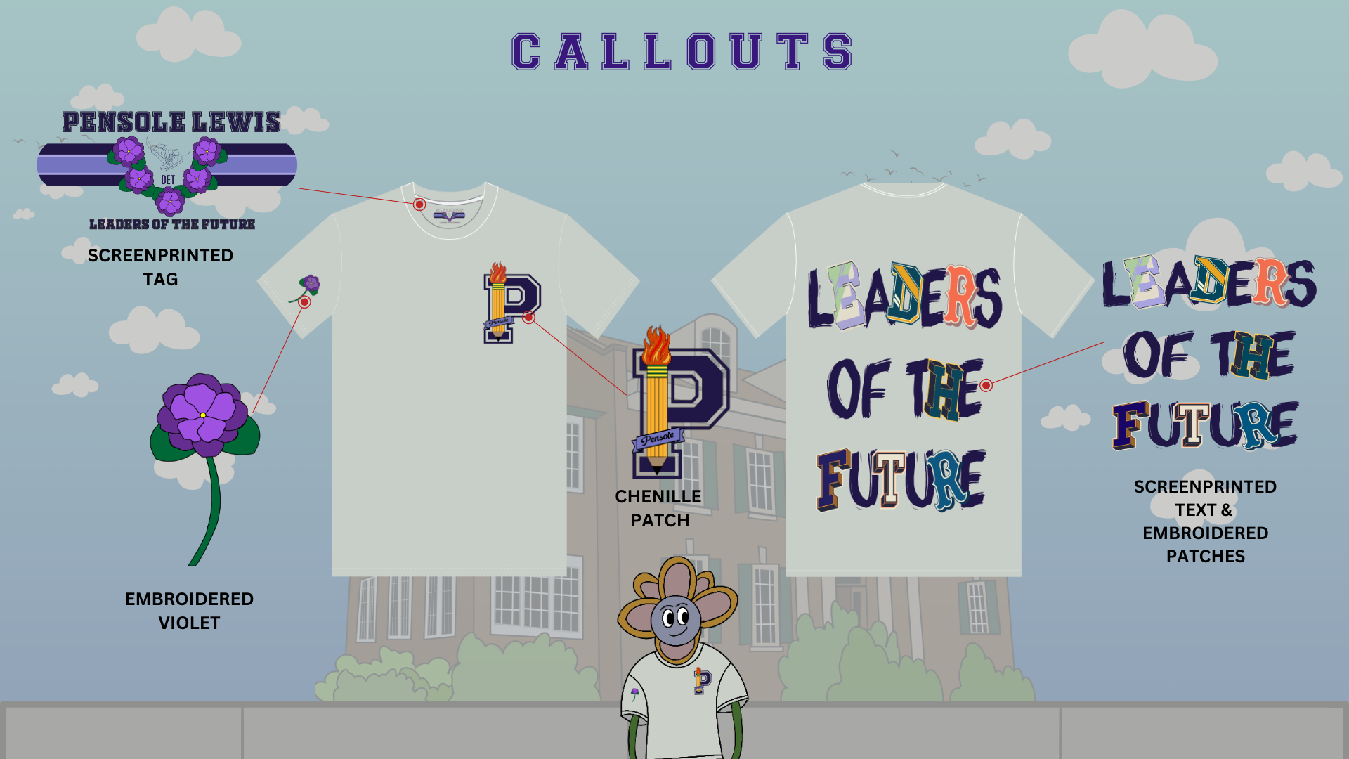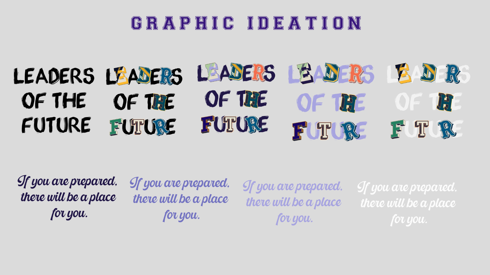 Thinking back to the design language of bold and playful, I wanted to find a way to make the “LEADERS OF THE FUTURE” graphic more dynamic – and I found that through adding preppy-styled letters. “If you are prepared, there will be a place for you” is a quote by Dr. Violet T. Lewis.