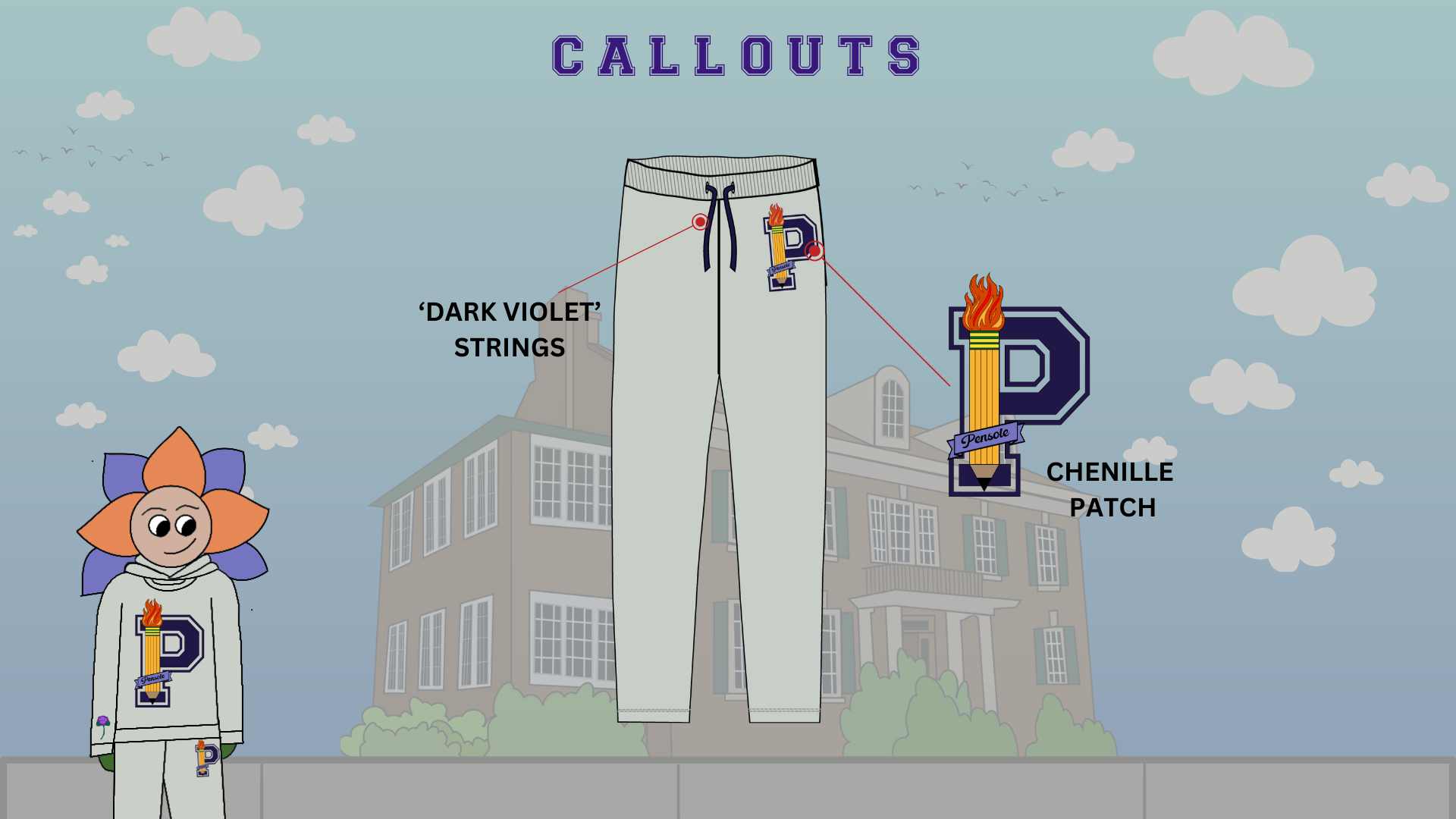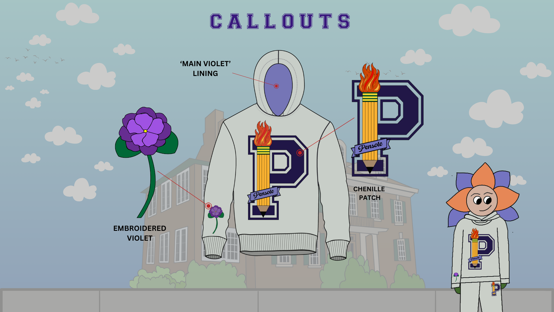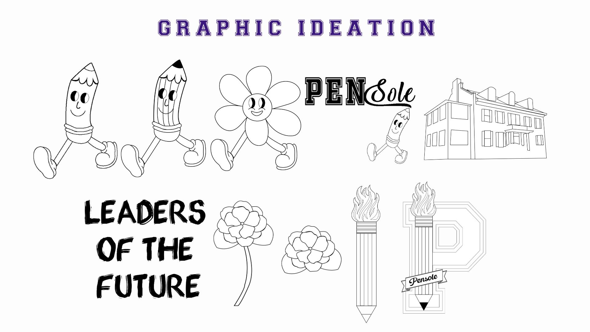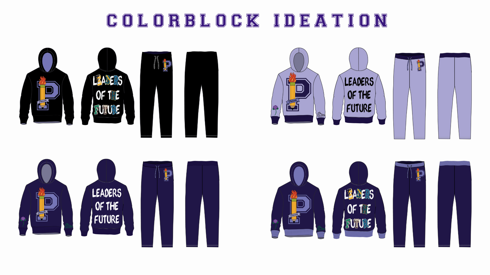I decided to go with the preppy graphic concept. In doing so, I knew that I wanted to modernize the old Pensole Academy logo, and find a way to incorporate the idea of flames/lights – as an ode to Blacklights and being trailblazers. 1928 and 2024 represent Lewis College of Business and PLC Detroit, violets are in honor of Dr. Violet T. Lewis.