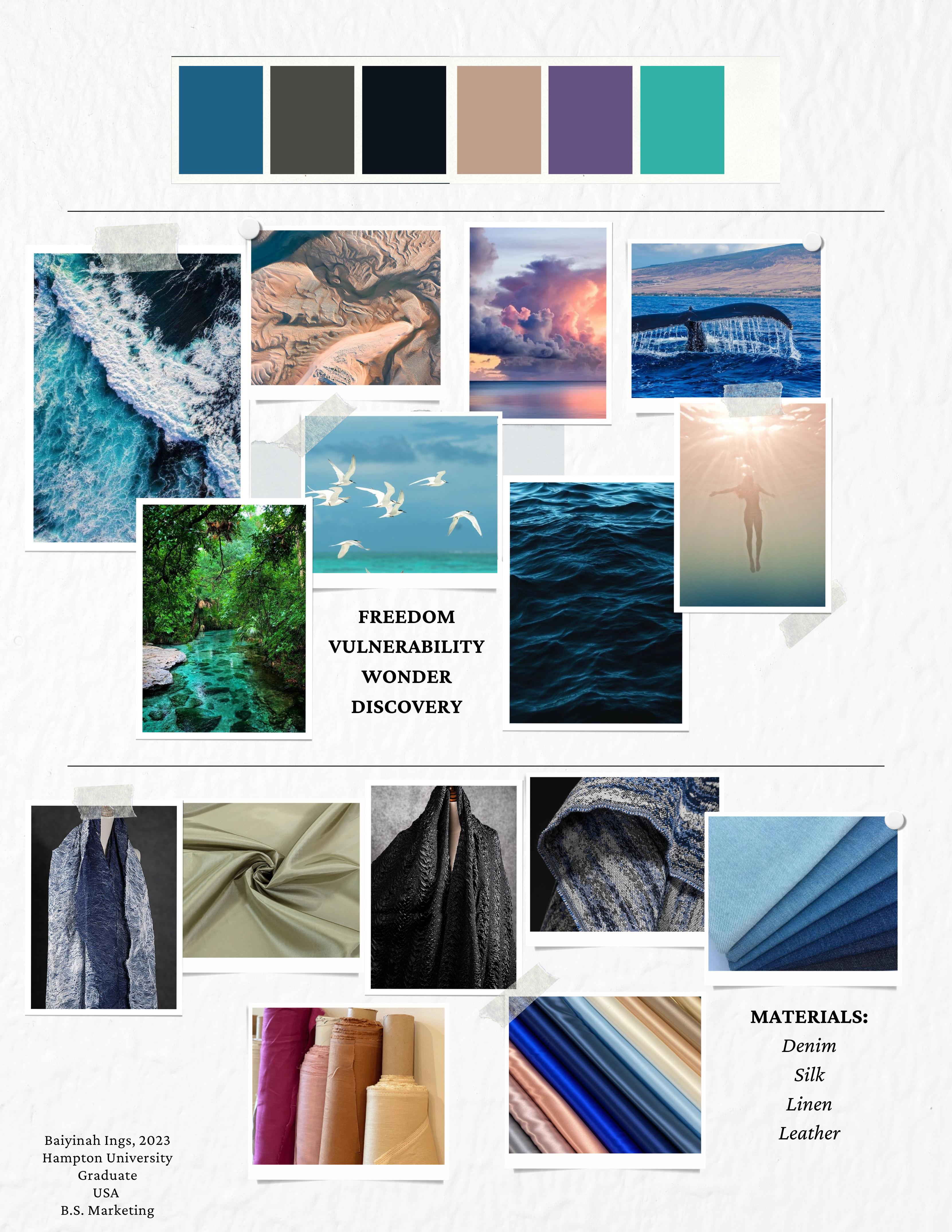 For the Color & Material Design track, applicants were instructed to come up with a modern luxury brand inspired by the world around us. At the time of the submission, I was a recent graduate from Hampton University (Spring/Summer 2023), and used Hampton’s Home by the Sea, and my fellow graduates as my inspiration.